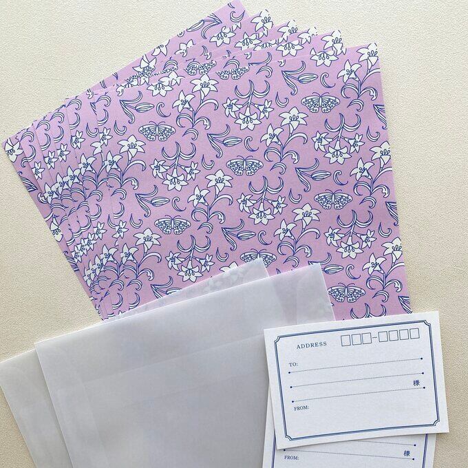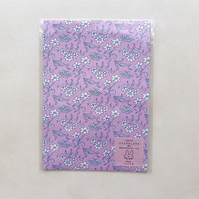 レターセット ユリとオオムラサキ 水縹色 illust design/うちこラボ