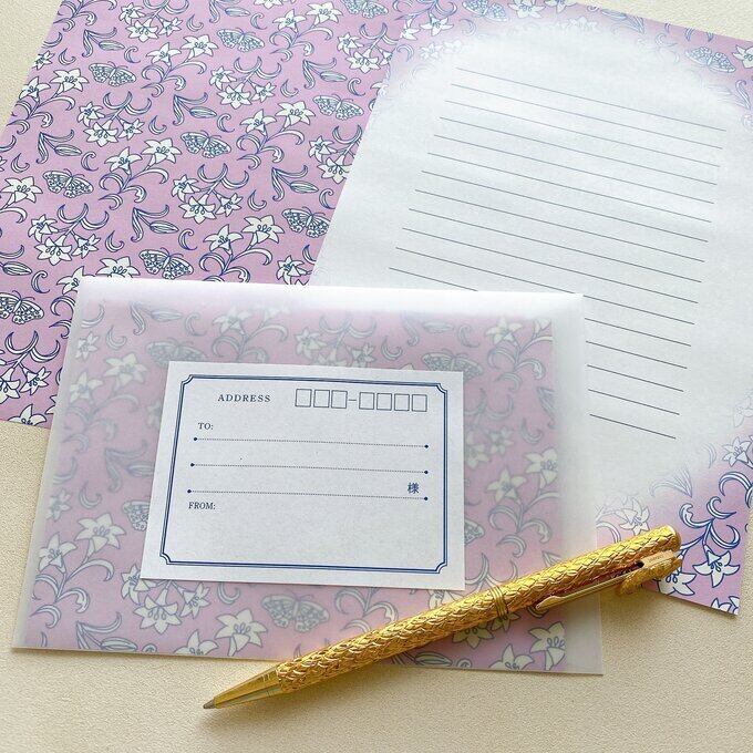 レターセット ユリとオオムラサキ 鴇色 illust design/うちこラボ
